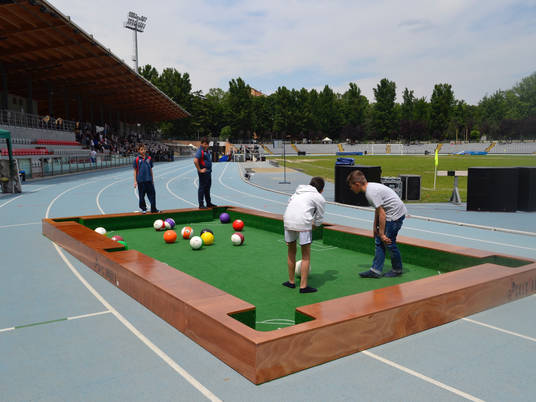 Billar con los pies.Tanto si se trata de Fútbol-Billar, Soccerpool, Footpool o Snook Fútbol, hay muchos conceptos diferentes para este nuevo deporte de diversión que, actualmente, conquista el mundo y que es una combinación de billar y fútbol. El nuevo deporte de moda es una mezcla estupenda de toque, cabeza y diversión. Se juega sobre una mesa de billar de grandes dimensiones. Se utilizan pelotas de fútbol del tamaño 4 o 3. Éstas están formadas, como en el billar, por 7 bolas medias y siete enteras más la bola negra con el número 8. La bola blanca, a diferencia de las otras bolas numeradas, es una bola “low bounce”, es decir, una bola con una fuerza de rebote reducida. Además de la ambición deportiva, en el Fútbol-Billar también cuenta la diversión y el entretenimiento. La capacidad combinatoria y algo de efectividad también son parte del juego, al igual que en un billar convencional.